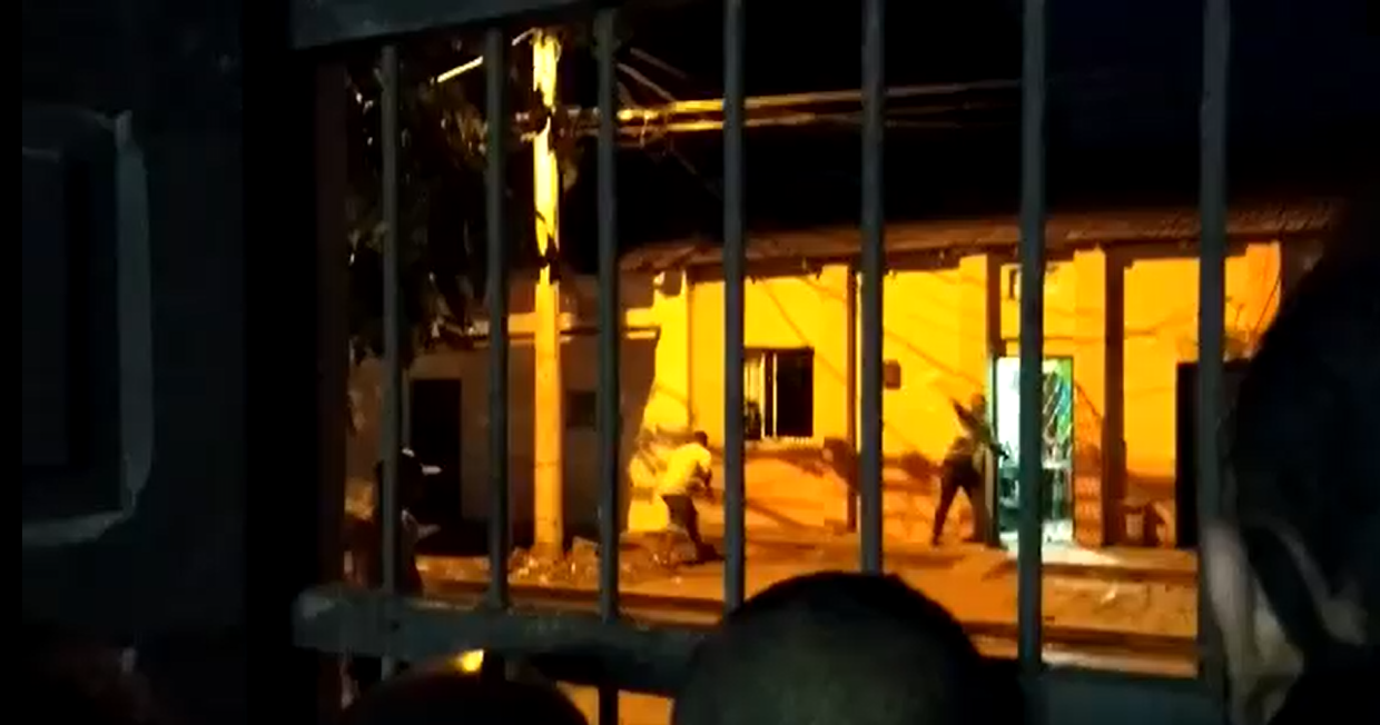 En las imágenes se observa como un grupo de personas lanzan piedras a una vivienda, cuyos habitantes se defienden con palos.