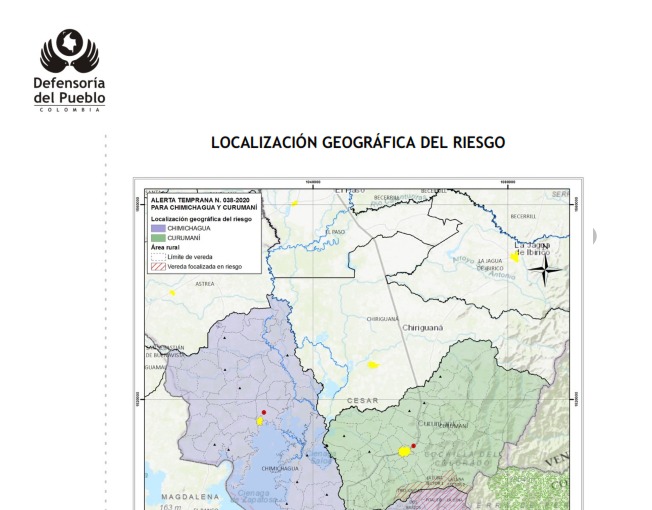“Hacer seguimiento a la actuación de las autoridades territoriales concernidas en la presente advertencia e informar al Sistema de Alertas Tempranas de la Defensoría del Pueblo sobre los resultados de las gestiones adelantadas. A las personerías municipales de Chimichagua y Curumaní, efectuar el seguimiento y vigilancia a las acciones de los organismos competentes del orden local, de conformidad con lo establecido en la presente Alerta Temprana de Inminencia, subrayó la Defensoría.