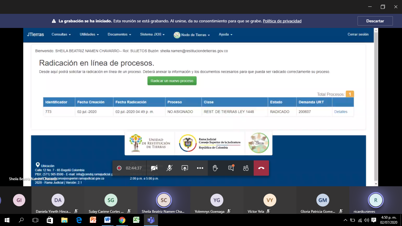 Para Claudia Mireya Manotas Mejía, directora territorial de la Unidad de Restitución de Tierras para los departamento de Cesar y Guajira, este proceso aporta al ejercicio público y evidencia el compromiso de la entidad por restablecer los derechos vulnerados a las víctimas de la violencia. “La presentación de estas demandas de manera electrónica significa todo el trabajo realizado en estos últimos meses de confinamiento, la meta es ampliar las cifras de radicación para así materializar el derecho a la restitución de tierras de nuestros solicitantes”.