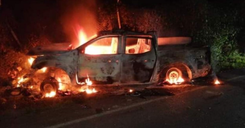 Aun las autoridades no se han pronunciado, pero en video quedó registrado el momento en que la camioneta oficial de la Institución en la que se movilizaban los uniformados se estaba incendiando, al parecer, producto del ataque terrorista por parte de delincuentes. hsbnoticias