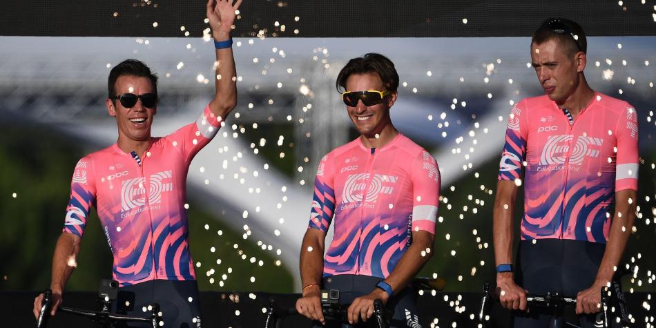 #ElTourPorCaracol l Rigoberto Urán fue presentado como una estrella en Niza. El EF Pro Cycling también cuenta con los colombianos Daniel Martínez y Sergio Higuita.