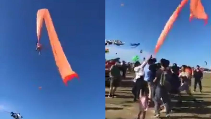 El video captó el momento en que la menor gira varias veces sobre una multitud de adultos que luchaban por jalar el cometa hacia la tierra.