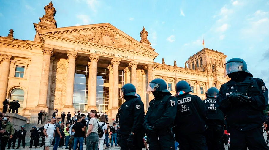 Las imágenes del sábado por la noche de centenares de manifestantes intentado forzar las barreras y el cordón policial para subir las escalinatas del célebre edificio del Reichstag en Berlín han impactado al país.
