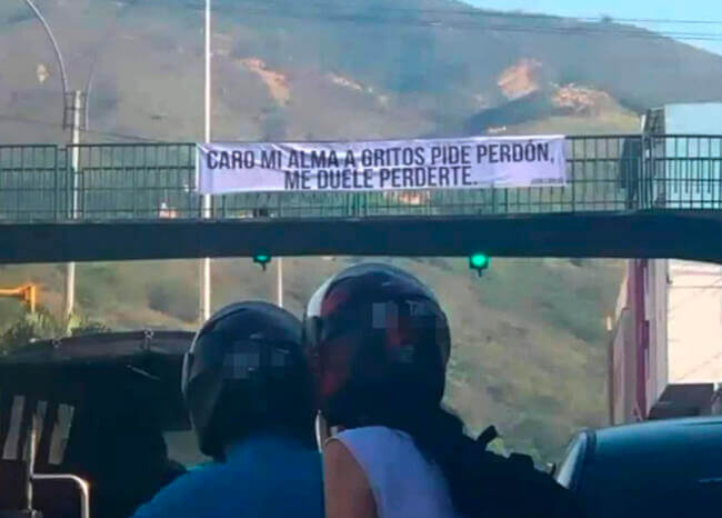 Hay sorpresa en Cali luego que aparecieran varias pancartas en las que un hombre despechado le pide perdón a su novia.