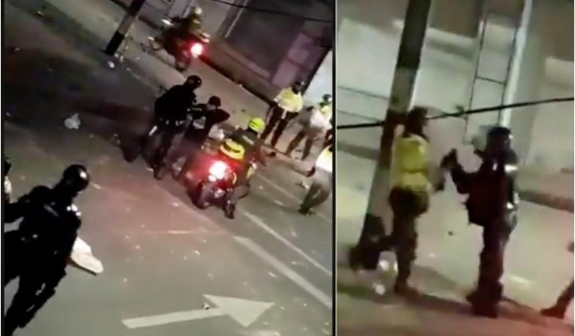 En medio de los desmanes, saqueos, incendios y actos de violencia registrados principalmente en Bogotá, se presentó un hecho particular que involucró a un agente del Esmad, que terminó peleando con un miembro de la Policía Metropolitana, para defender a un manifestante.