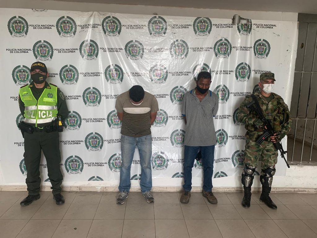 Por estos hechos fueron capturados por el Ejército con apoyo de la Policía Nacional, Luis Antonio Amay Curiel, de 50 años, oriundo de Fonseca, La Guajira e Isidro Martínez Vergara, de 34 años, oriundo de El Difícil, Magdalena. Ambos quedaron a disposición de la Fiscalía, para la respectiva judicialización.
