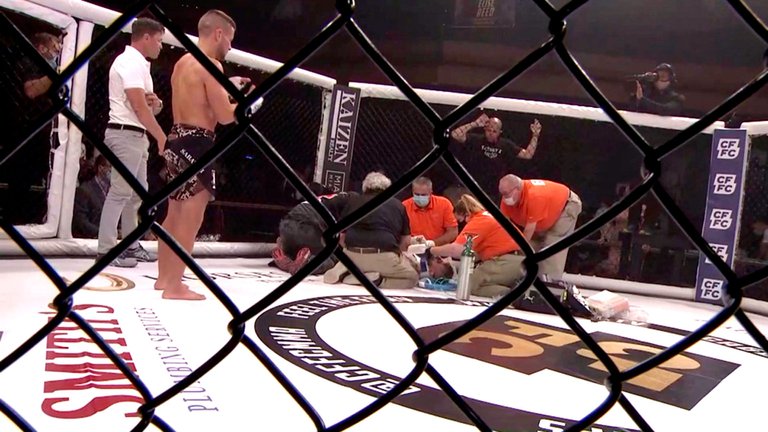 Un combate de artes marciales mixtas (MMA) en Estados Unidos disputado este jueves por la noche dejo una escena terrorífica: un peleador quedó inconsciente durante 15 minutos en el octágono. Las imágenes preocuparon a todos los fanáticos pero afortunadamente el luchador se recupera favorablemente tras hacerse estudios médicos y confirmar que no sufrió lesiones graves.
