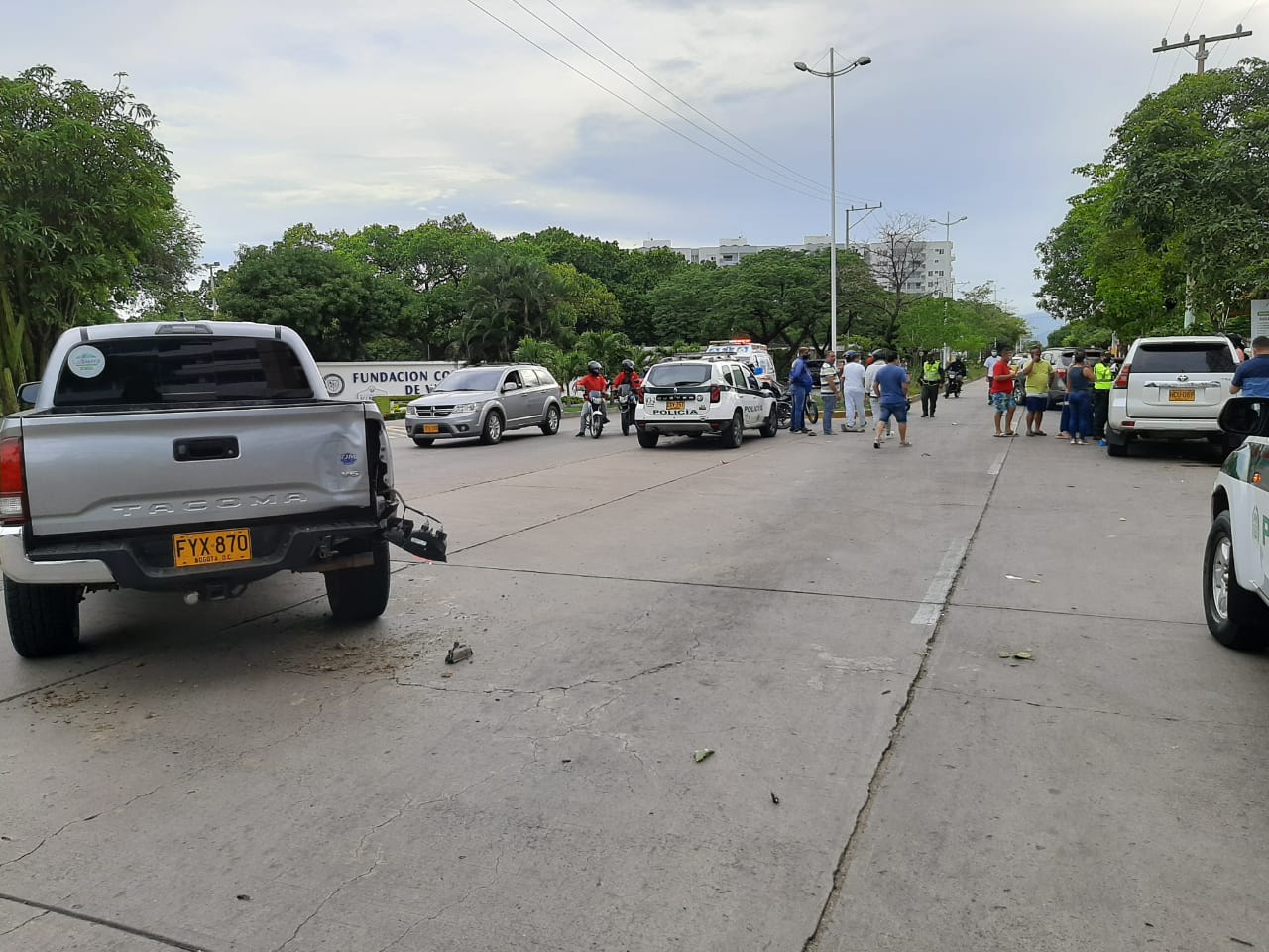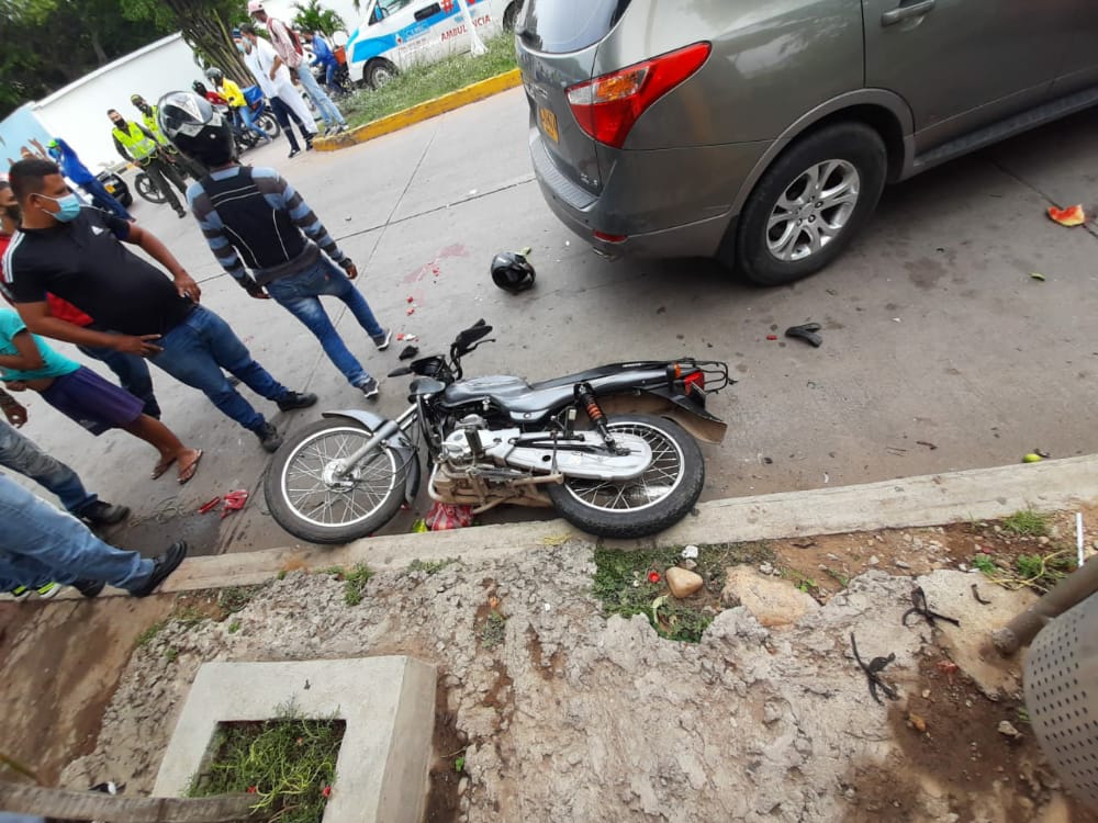De acuerdo a versiones preliminares de la Policía de Tránsito en el Cesar, los ocupantes de una motocicleta impactaron contra la parte posterior de una camioneta que realizaba la U en la intersección que está frente a la institución educativa.