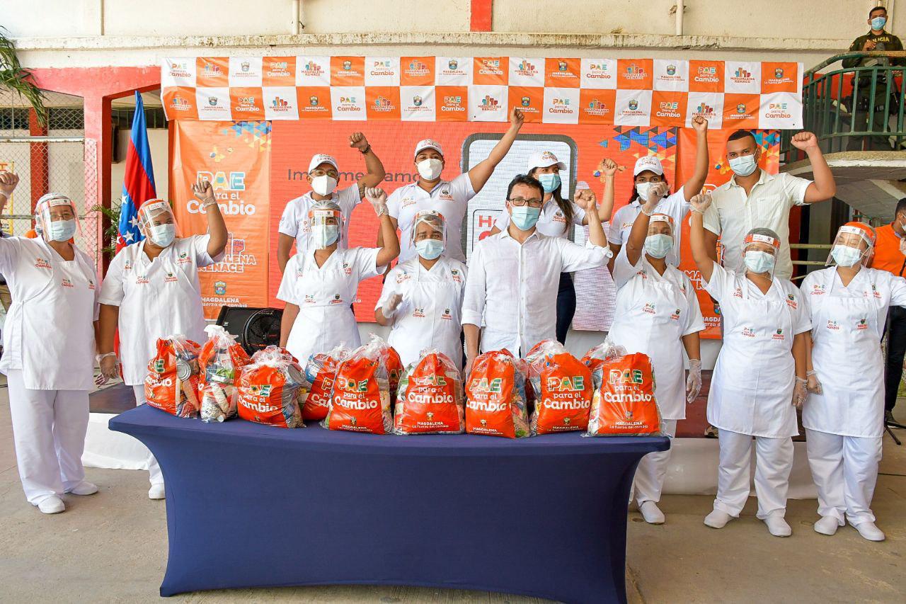 Desde el municipio de Plato el gobernador Carlos Caicedo lanzó el Programa de Alimentación Escolar ‘PAE para el Cambio’, por medio del cual se entregarán en el Magdalena 8.506.082 Raciones para Preparar en Casa (RPC) en beneficio de 137.306 niños, niñas y adolescentes del Departamento, lo que representa un aumento del 11% en la cobertura y garantiza la alimentación durante la pandemia.