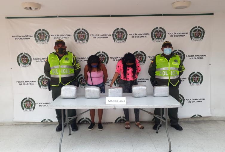 La Policía Nacional en desarrollo del plan choque “Construyendo Seguridad” y en la lucha frontal contra el delito, a través de uniformados adscritos a la Seccional de Tránsito y Transportes de la Policía Metropolitana de Santa Marta, logró la captura de dos ciudadanas las cuales se desplazaban en un bus de servicio departamental, al parecer con una cantidad considerable de marihuana.