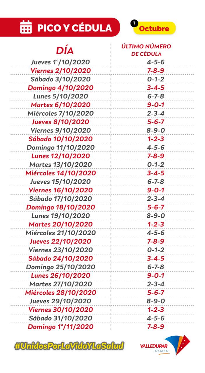 Pico y Cédula en Valledupar hasta el 31 de Octubre