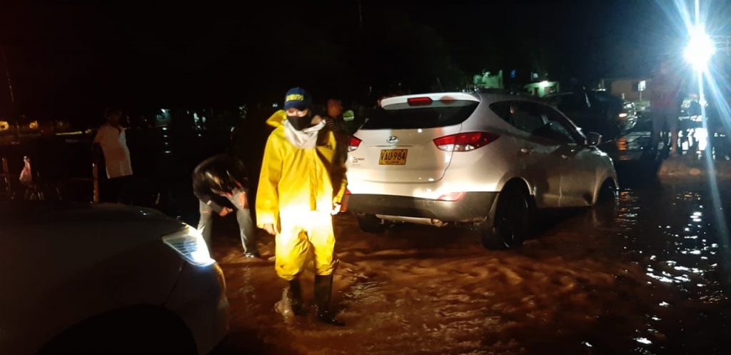Se registraron fuertes inundaciones y el colapso de las avenidas, al punto de ameritarse el rescate de un vehículo que fue arrastrado por la fuerte corriente de agua.