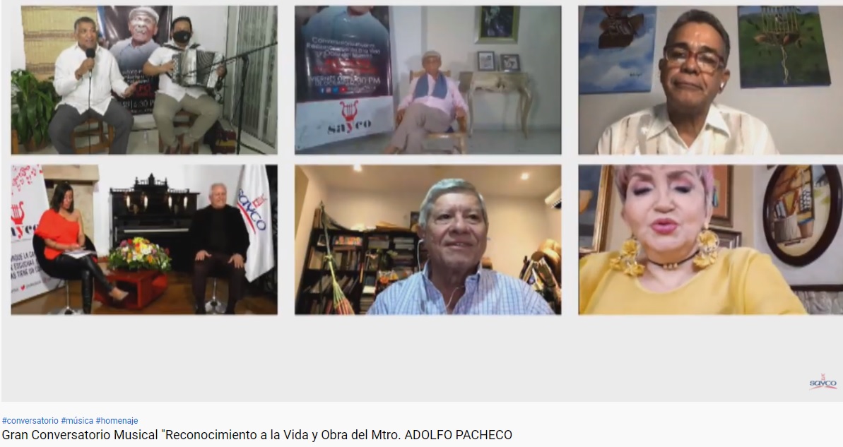 El maestro Adolfo Pacheco nos acompañó desde su hogar en Barranquilla. Allí se mostró muy complacido con este homenaje y la entrega de la distinción de la orden Santa Cecilia, el mayor reconocimiento que SAYCO realiza a un compositor en Colombia, cuya trayectoria y aporte a la cultura de nuestro país haya sido significativo y trascendental. El maestro también recibió un reconocimiento económico aprobado por el Consejo Directivo de la Sociedad de Autores y Compositores de Colombia, SAYCO de manera unánime.