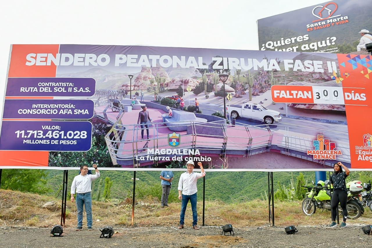 “Hoy iniciamos en el Magdalena las obras de la Red de Parques de la Equidad y la Alegría con la segunda fase del Sendero del Ziruma. Una obra que conectará a Santa Marta con El Rodadero para el goce de todos. Esperamos disfrutarlo en 10 meses”, manifestó el Gobernador.