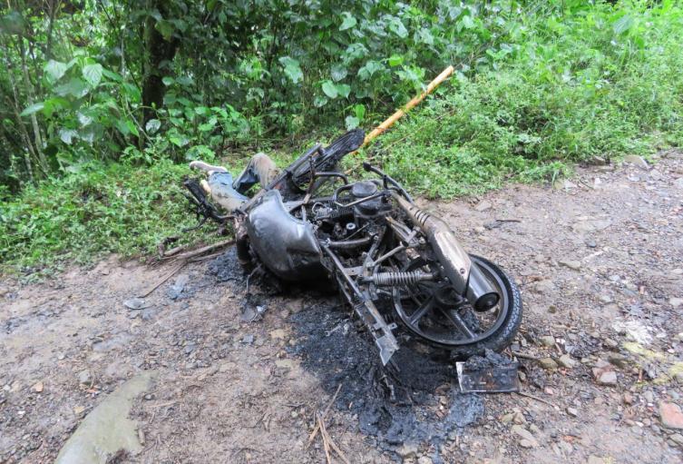 Según los resultados de las pesquisas, en ese lugar el sospechoso decidió prenderle fuego a la víctima y su motocicleta, ya que él le debía 50.000 pesos aproximadamente, para luego escapar del lugar mientras el cadáver se calcinaba rápidamente junto a su vehículo.