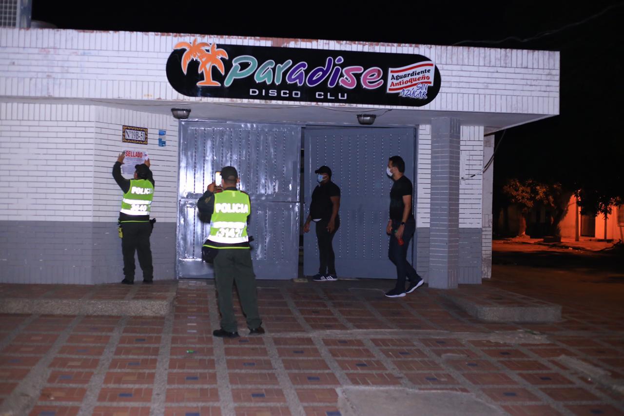 La Secretaría de Gobierno de Valledupar en conjunto con la Policía Nacional, selló la discoteca Paradise Club, en Valledupar, la cual estaba incumpliendo las medidas sanitarias debido a la pandemia que restringe la reapertura de este sector de la economía ya que podría convertirse en un foco de contagio en la ciudad.