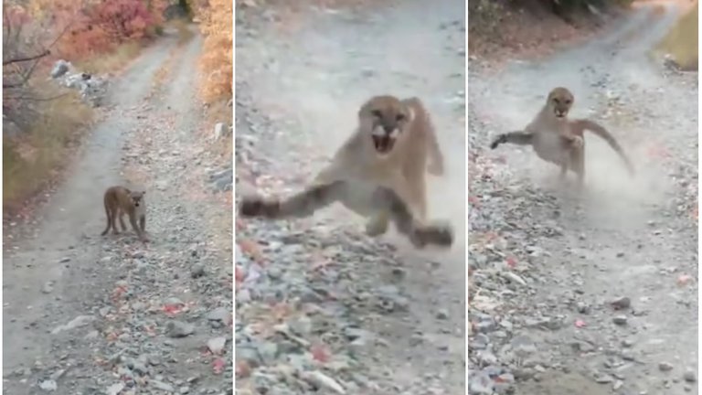 Durante su caminata matutina, un hombre identificado como Kyle Burgess vio a lo lejos un cachorro puma y decidió grabarlo, un instante después la tierna imagen del cachorro de convirtió en momentos de angustia y terror cuando la madre apareció mirándolo de forma agresiva y con actitud de ataque.