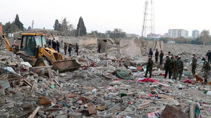 Según las autoridades azerbaiyanas, dos cohetes impactaron en un barrio residencial de Ganja y destruyeron completamente cinco casas y dañaron otras quince.