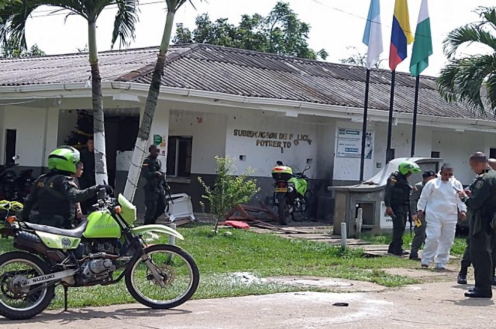 Cinco horas después se presentó un hecho de similares características, esta vez contra las instalaciones de la estación de Policía del municipio, exactamente a las 11:50 p.m., dejando herido a un auxiliar bachiller de la Policía Nacional.