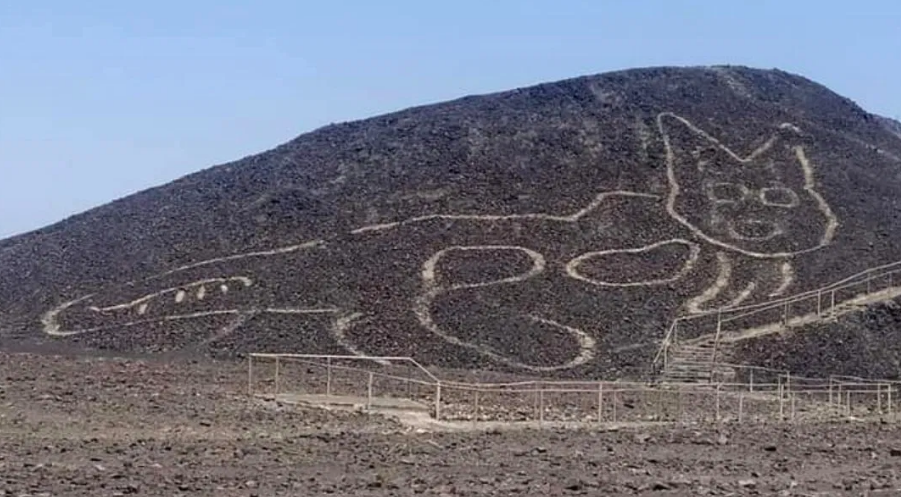 Descubren geoglifo con forma de gato en la Nazca, Perú