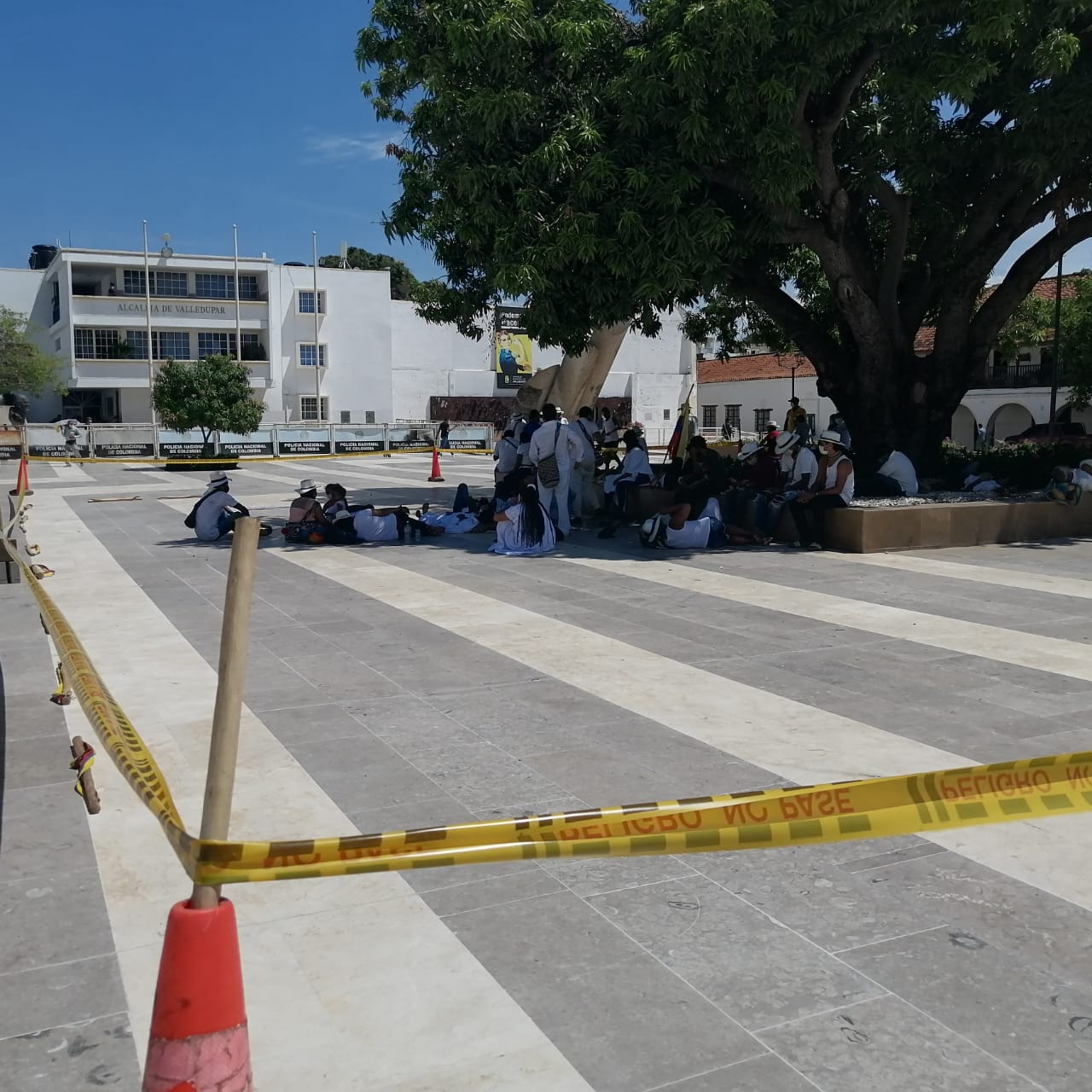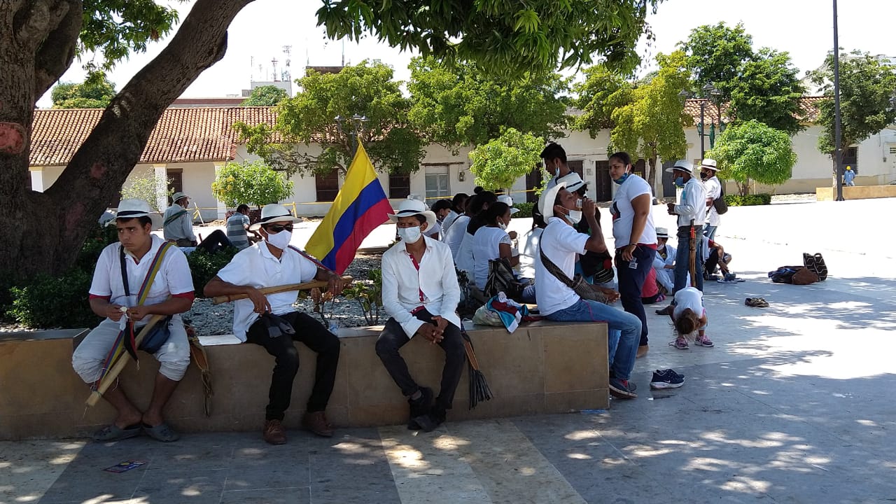 Hombres, mujeres y niños forman parte de la delegación; ellos mismos han fijado su cordón de seguridad y no permiten que nadie invada su espacio. Hasta esta hora no han logrado el diálogo con la Alcaldía de Valledupar.
