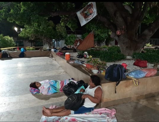 Tirados en el piso con camas improvisadas y alrededor del emblemático palo de mango en la Plaza Alfonso López de Valledupar, permanecen los indígenas kankuamos de la comunidad Chiskuinya, como parte de la protesta que desde ayer iniciaron exigiendo autonomía de gobierno en su territorio.