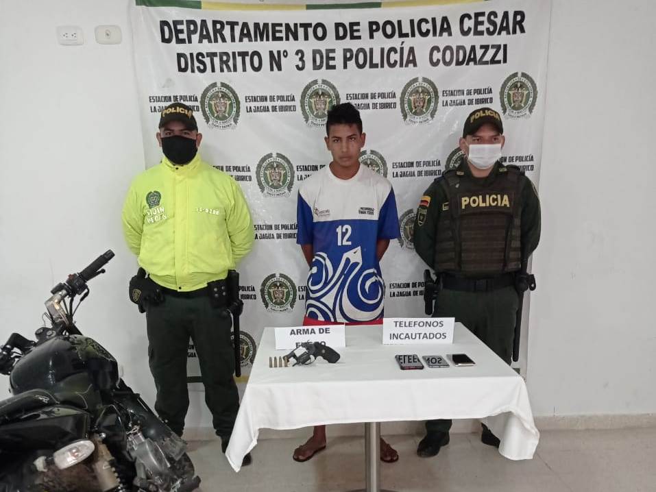 “Una vez la Policía Nacional tiene conocimiento de este hecho, despliega un operativo en este municipio donde se logró la detención de dos personas quienes serían los presuntos responsables de este hecho, a quienes se les incautó un arma de fuego tipo revólver de fabricación brasileña, tres celulares y una motocicleta”, sostuvo el comandante de la Policía en el Cesar, coronel Jesús De Los Reyes Valencia.