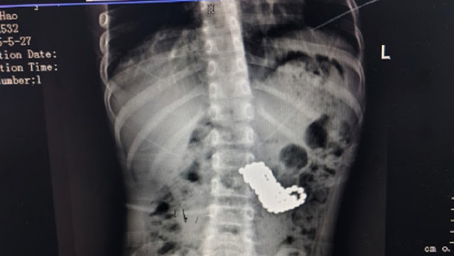 Preocupados, los papás del niño de 5 años lo llevaron al Hospital Afiliado de la Universidad de Medicina de Guizhou, en donde se confirmó por medio de una radiografía que realmente había comido 123 bolas magnéticas.