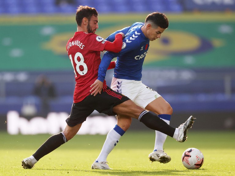 Luego de las molestias físicas que obligaron a que James Rodríguez se perdiera el último partido de la Premier League. El volante regresó a la alineación titular en la derrota 3-1 ante el Manchester United en la fecha 8 de la Premier League. Allí jugó 80 minutos, tuvo un promedio de 79% en acierto de pases y recibió dos faltas.