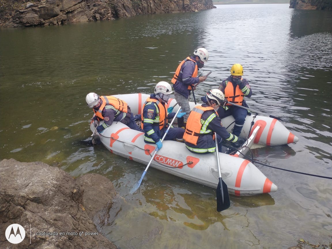 Durante cinco días se realizan maniobras de barridos a través de ganchos y cuerdas en el bote de rescate, así como descensos en la ladera de la represa con el fin de localizar a la persona ya que no se tenían indicios del punto de lanzamiento.