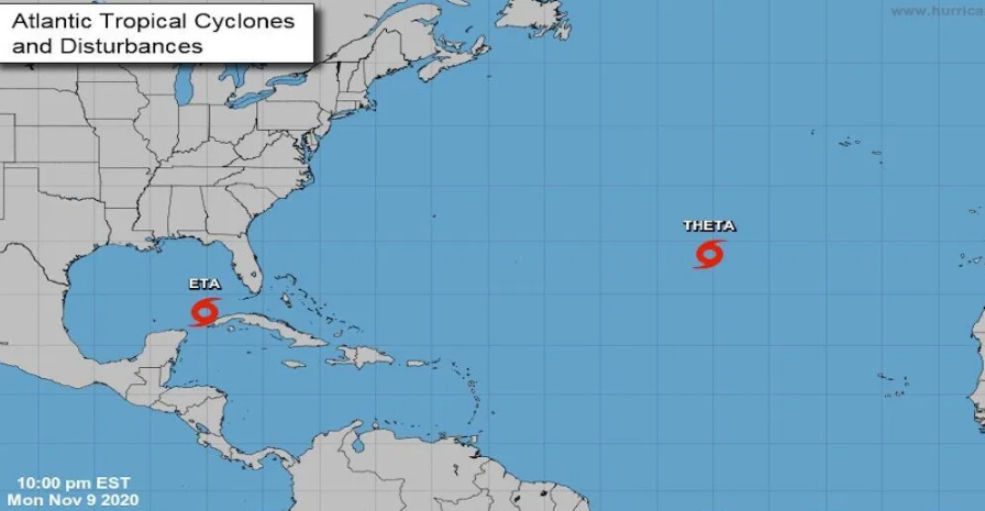 El NHC dijo que Theta rompió el récord anterior de 28 tormentas con nombre en una temporada establecido en 2005.