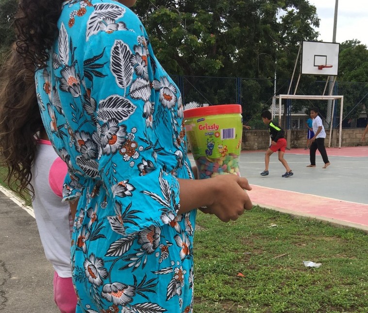 Su punto estratégico de ventas en horario nocturno es en la avenida Fundación con transversal 19, más exactamente en la zona de los restaurantes o bien llamadas fruteras, donde también aprovechan para recibir alimentos que los comensales suelen dejarles. Todo esto mientras su mamá y tía se queda a un lado con un bebé de brazos.