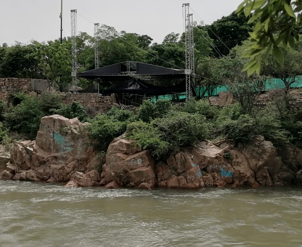 Frente a la emblemática Sirena de Hurtado y entre las viejas rocas que rodean el puente, están instalando la tarima para el concierto que el próximo sábado 21 de noviembre ofrecerá el cantante de vallenato, Silvestre Dangond, de manera virtual desde el río Guatapurí.