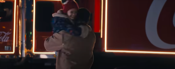 Al final del vídeo el hombre se reúne con su hija para abrazarla y en la pantalla aparece el siguiente mensaje de Coca Cola: «esta Navidad da algo que solo tú puedes dar».