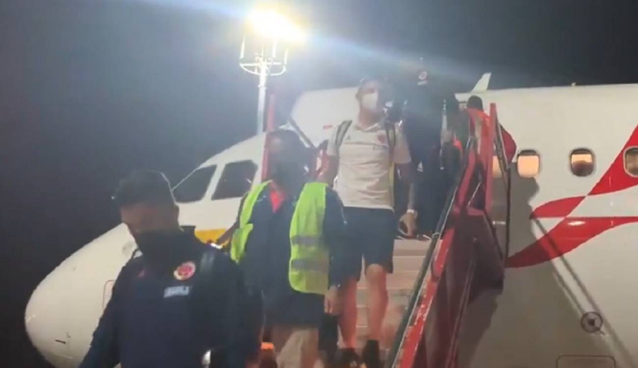 Este domingo en la noche arribó la delegación de la Selección Colombia al Aeropuerto Internacional Mariscal Sucre de Quito, donde el próximo martes estará enfrentando a Ecuador por la cuarta fecha de las Eliminatorias.