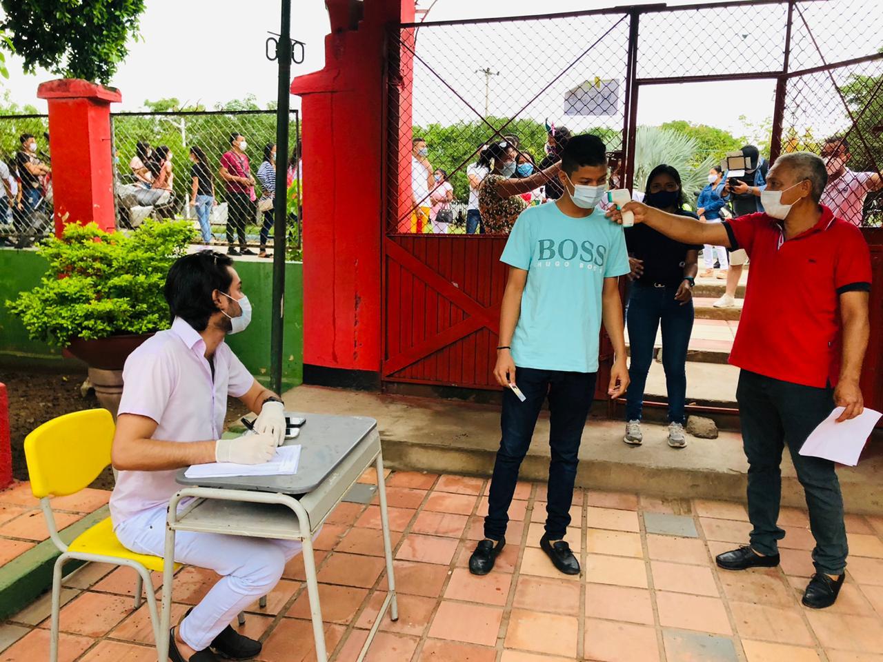 Con un jefe de salón, personal de salud y 15 estudiantes en cada salón previamente aseado, lavado de mano y medición de temperatura, se garantizó el cumplimiento de los protocolos de bioseguridad desde las primeras sesiones en la mañana y la segunda por la jornada de la tarde.