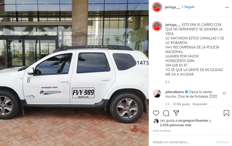“Asesinaron a mi hermano en Medellín por robarle su vehículo con que trabajaba. Toda mi gente antioqueña, vamos a denunciar”, escribió ‘Jeringa’.