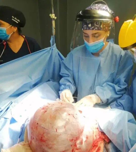 Especialistas extrajeron esta semana un tumor de 8 kilos de peso y de 90 centímetros de ancho por 90 centímetros de largo, que se encontraba localizado en el ovario izquierdo de una mujer de 57 años de edad.