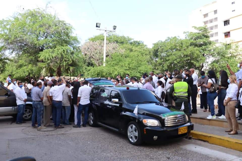Desde que ayer partió el féretro de Valledupar, donde también se le rindió un homenaje póstumo por parte de la Gobernación del Cesar y Sayco. La caravana fúnebre fue recibida por cada pueblo que recorría, hasta que en horas de la noche llegó a Riohacha, donde hoy también lo enaltecen como un ser humano que quedará en el corazón de todos y en la historia del mundo vallenato.