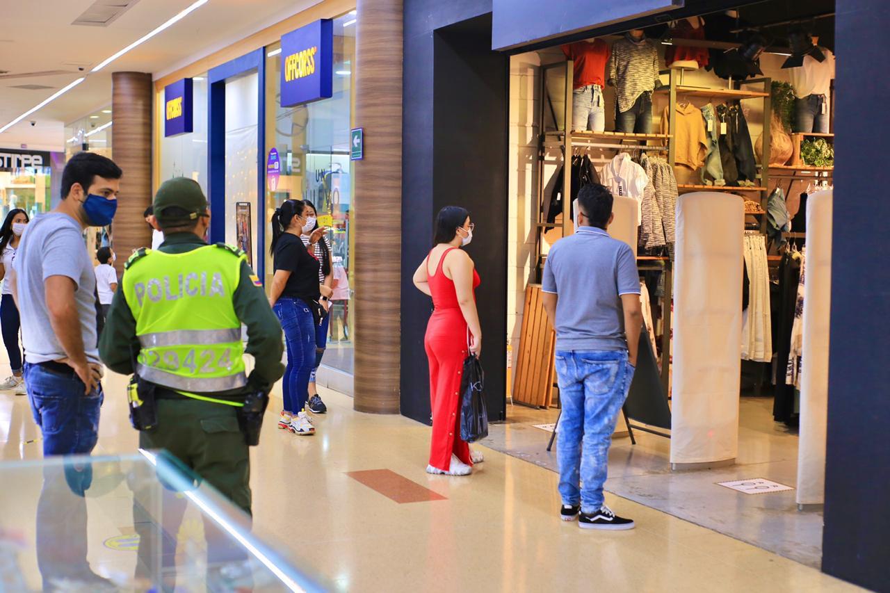 La Secretaría de Gobierno Municipal desplegó operativos de control y seguimiento a centros comerciales y almacenes de grandes superficies con el objetivo de monitorear el ingreso. Asimismo, supervisar las medidas de prevención implementadas, por ejemplo la limpieza y toma de temperatura a los clientes, el uso correcto del tapabocas, el distanciamiento y la desinfección de espacios y zonas de alto contagio.