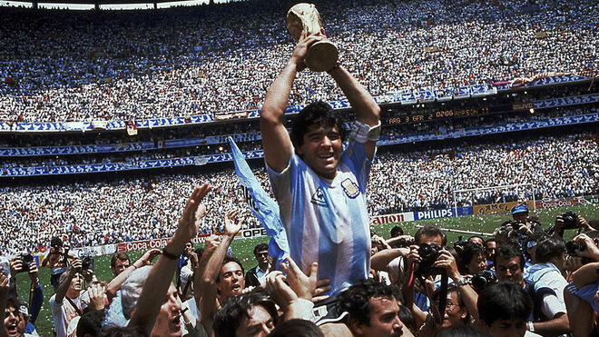 Con la Albiceleste ganó la Copa del Mundo sub’20 de Japón 1979 y luego, en México 1986, hizo su nombre inmortal al anotar el mejor gol del siglo XX y el tanto con «La mano de Dios» a Inglaterra en cuartos de final del Mundial que Argentina ganó.