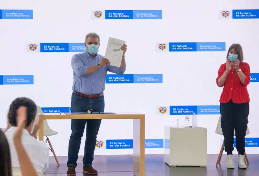 Desde Sonsón, Antioquia, el presidente Iván Duque sancionó la Ley del Presupuesto, el cual, destacó, se trata de un “monto sin precedentes”, ya que más de 319 billones de pesos que serán clave para la reactivación del país.
