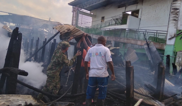 En un mes, cuando terminen de retirar los escombros, comenzará la reconstrucción de las 82 viviendas consumidas por un incendio en el barrio Benjamín Hidalgo en Riosucio, Chocó.
