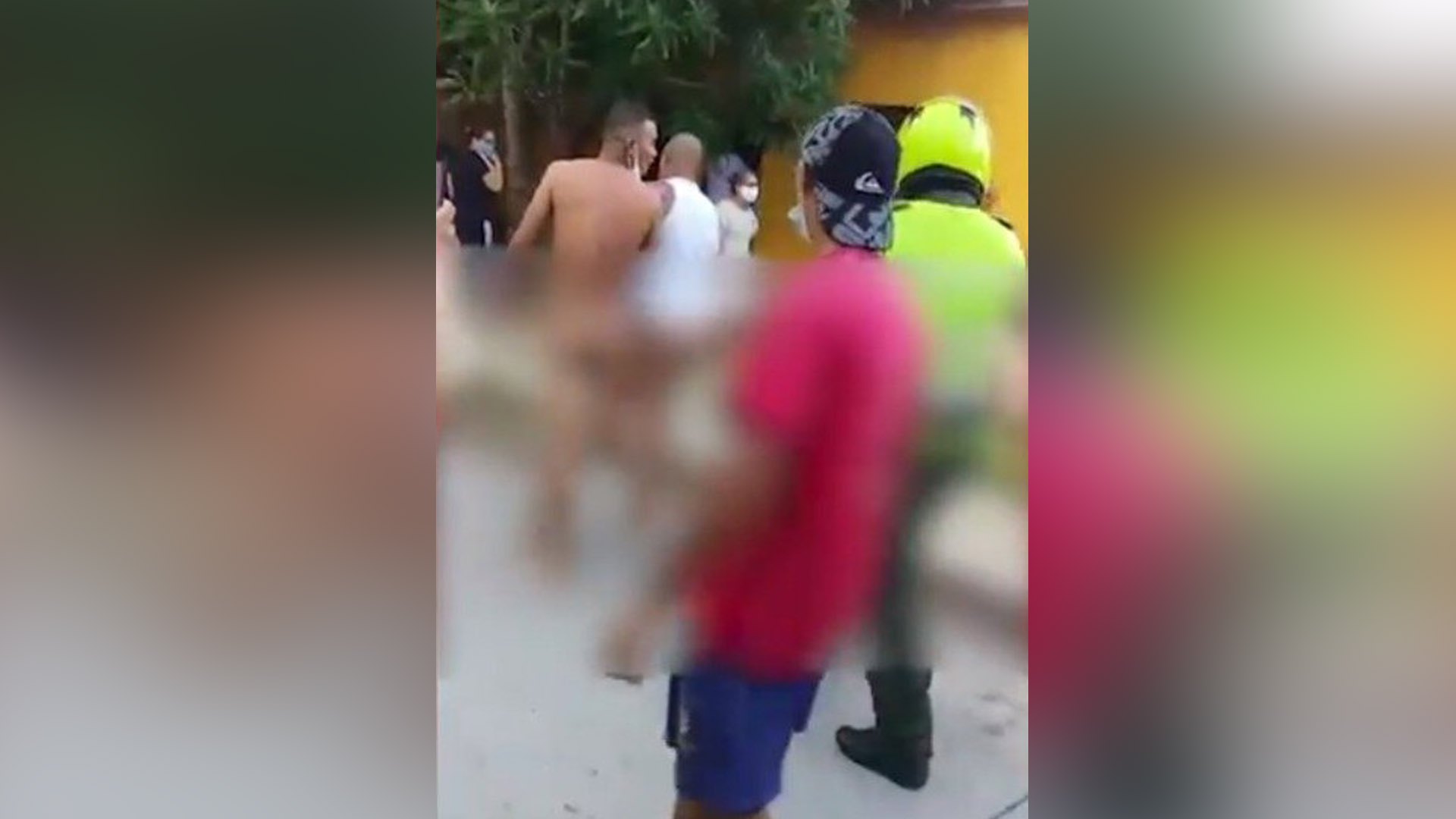 En el vídeo que ya es viral en redes sociales, se observa cómo los dos hombres de quienes se desconoce su identidad caminan desnudos por la calle, mientras que vecinos del sector los agreden con todo tipo de elementos.