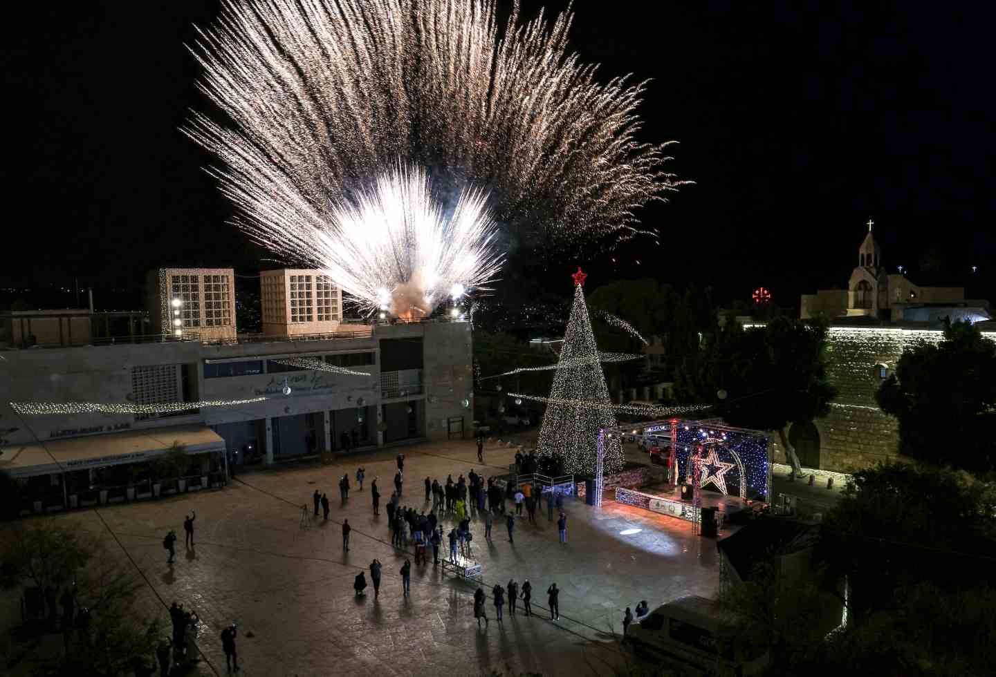Tradicionalmente, los palestinos y los peregrinos celebran el inicio de las fiestas de Navidad en Belén con la iluminación del árbol. La multitud asiste al espectáculo reunida en la plaza de la Mangeoire delante de la iglesia de la Natividad, construida donde habría nacido Jesús.