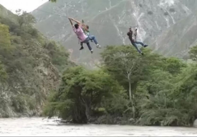 Habitantes de Santander arriesgan sus vidas al cruzar río colgados de una cuerda [VIDEO] https://t.co/O3UnuJgrvJ pic.twitter.com/1mkx0zFvwh