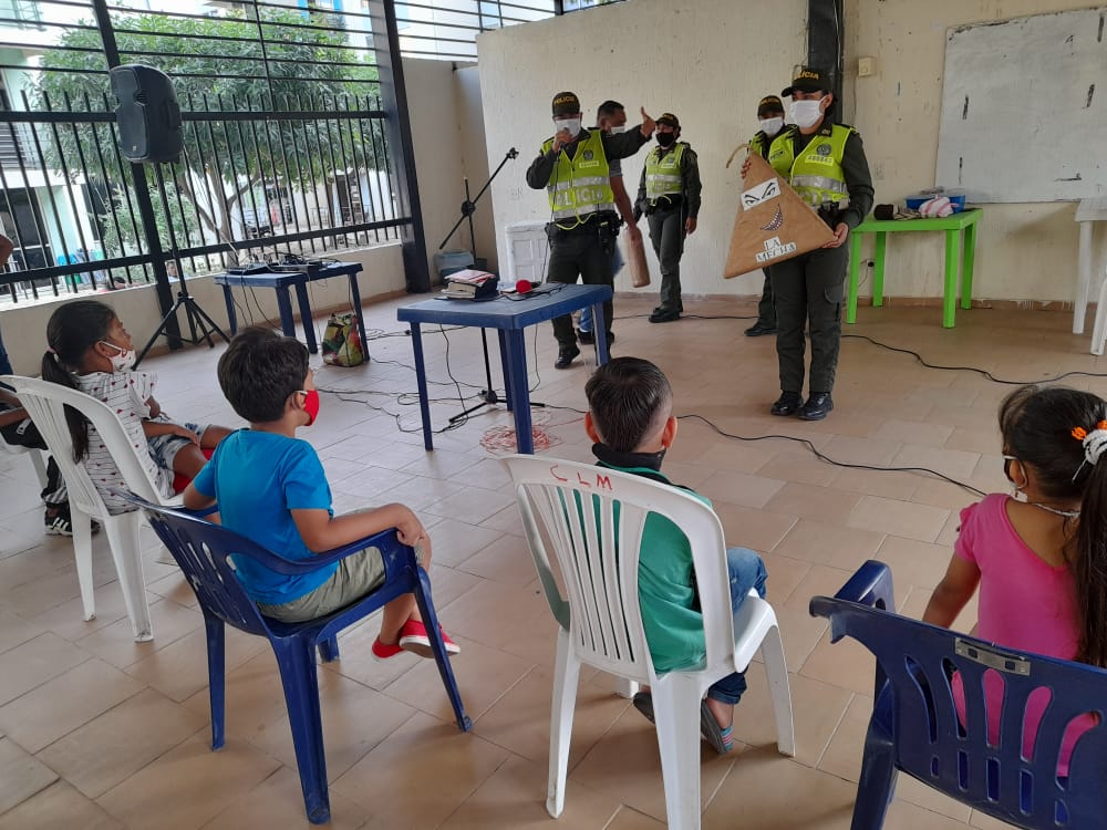 Los uniformados sensibilizaron a los pequeños en que el uso de la pólvora a través de fuegos artificiales pone en peligro su vida y de esta manera crear conciencia en los padres y en la comunidad.