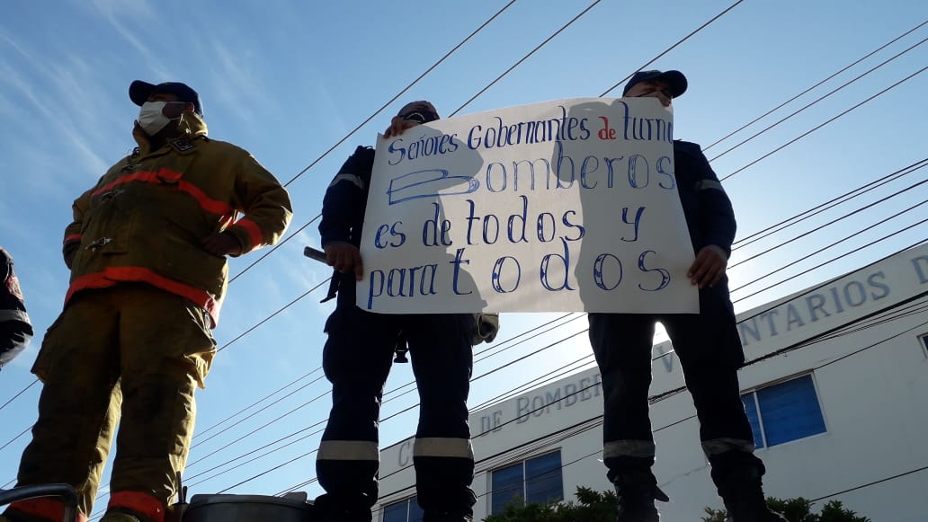 Ya cansados de la situación, los bomberos decidieron salir a pedir auxilio y cerraron la calle 16 frente a la sede del comando. Con los camiones y otras unidades protestaron, además de portar pancartas en las que piden atención por parte de los gobiernos local y departamental.