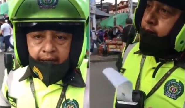 La mujer asegura que la infracción es una respuesta a la petición a la que ella le hizo al uniformado para que se pusiera bien el tapabocas.