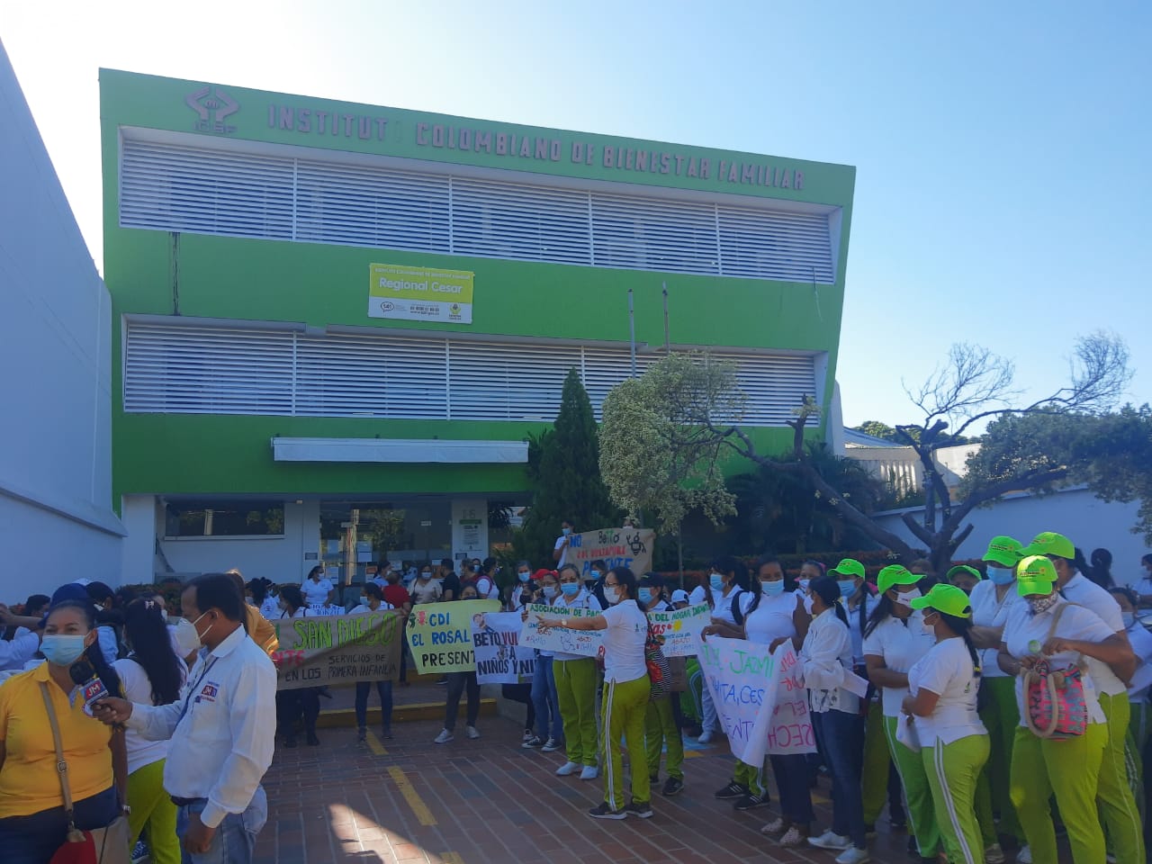 De acuerdo con Helena Díaz, presidenta del sindicato de Madres Comunitarias, indicó que la manifestaron la mantendrán hasta no ser escuchadas por la dirección del ICBF seccional Cesar.